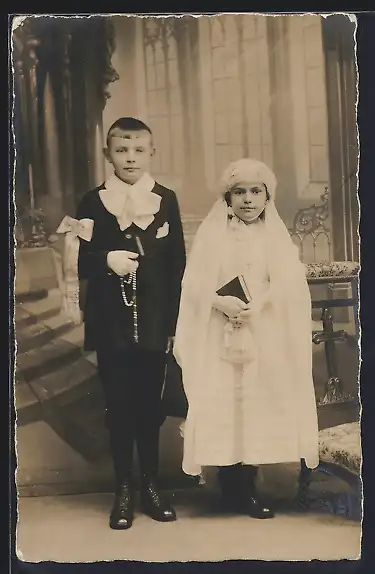 Foto-AK Zwei Kinder zu ihrer Kommunion
