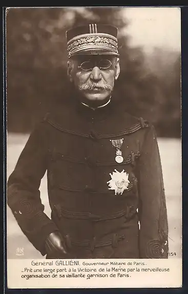Foto-AK französischer General Gallieni in Uniform mit Orden und Mütze