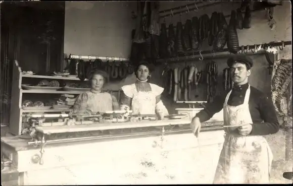 Foto Ak Aachen, Szene aus einem Fleischladen, Fleisch, Metzgerei