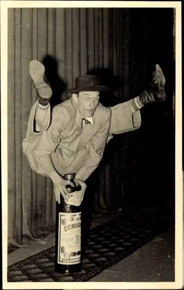 Foto Ak Akrobat, Flasche Schnaps