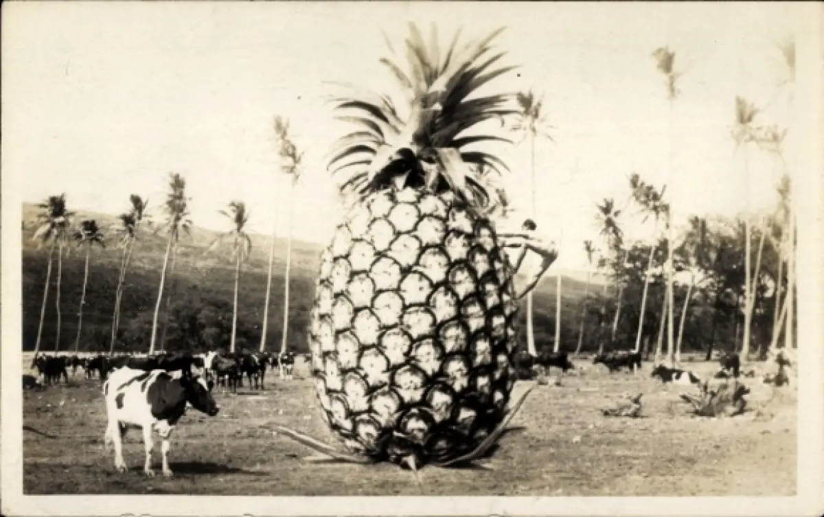 Foto Ak Ananas, Frucht, Palmen, Kuh