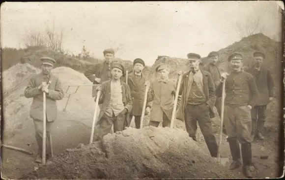 Foto Ak Arbeiter auf einer Baustelle, Schaufeln, Sand