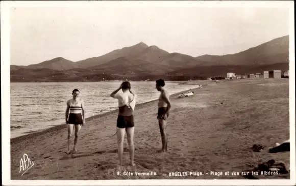 Foto Ak Argelès sur Mer Pyrénées Orientales, Plage et vue sur les Alberes