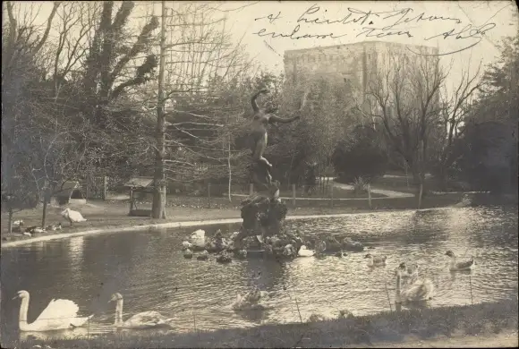 Foto Ak Avignon Vaucluse, Wasserpartie, Schwäne, Statue