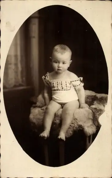 Foto Ak Baby, Kleines Kind, Portrait, Pelzdecke