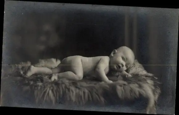 Foto Ak Baby, Portrait auf einem Fell