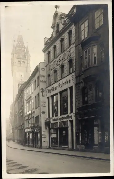 Foto Ak Bâle Basel Stadt Schweiz, Optiker Ruhnke, Straßenpartie