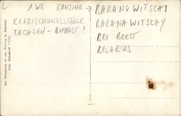 Foto Ak Baranawitschy Baranowitschi Weißrussland, 1. WK, Kantine, Erfrischungsstelle