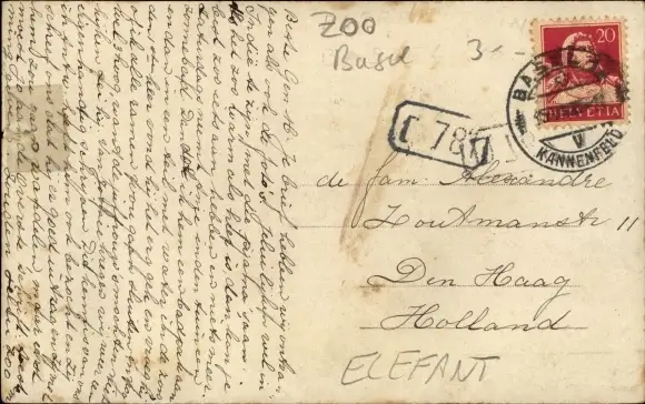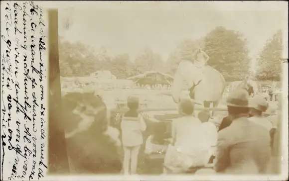 Foto Ak Basel Bâle Stadt Schweiz, Elefant, Menschengruppe