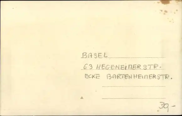 Foto Ak Basel Stadt Schweiz, Wohnhaus Hegeneinerstraße 63 Ecke Bartenheinerstraße, Geschäft
