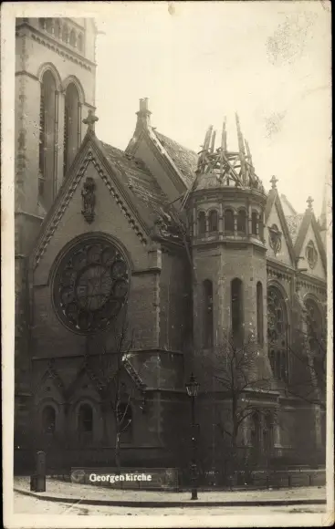 Foto Ak Berlin Mitte, Georgenkirche, Schäden am Gebäude, Straßenkämpfe