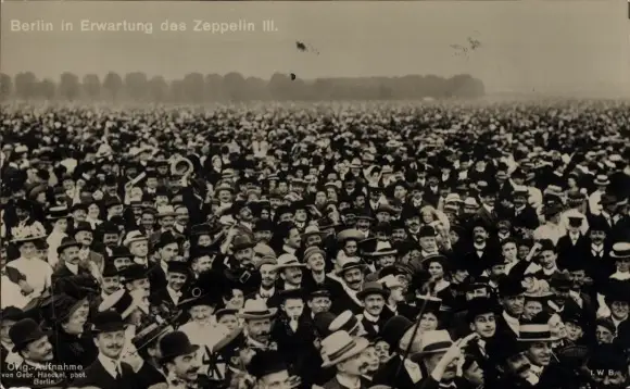Foto Ak Berlin, Zuschauer erwarten Zeppelin III.