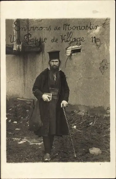 Foto Ak Bitola Monastir Umgebung Mazedonien, Un Poppe de Village, Pope