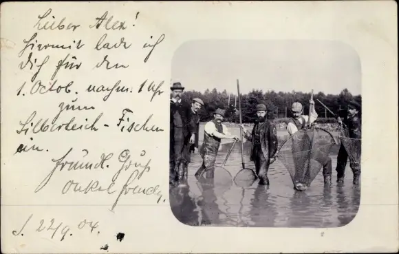 Foto Ak Braunlage im Oberharz ?, Fischer mit Netzen im Silberteich