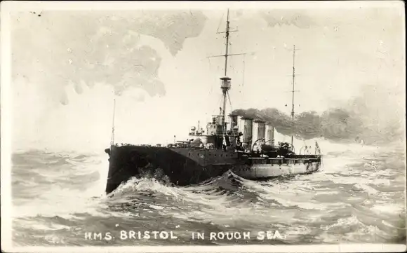 Foto Ak Britisches Kriegsschiff, HMS Bristol auf rauer See