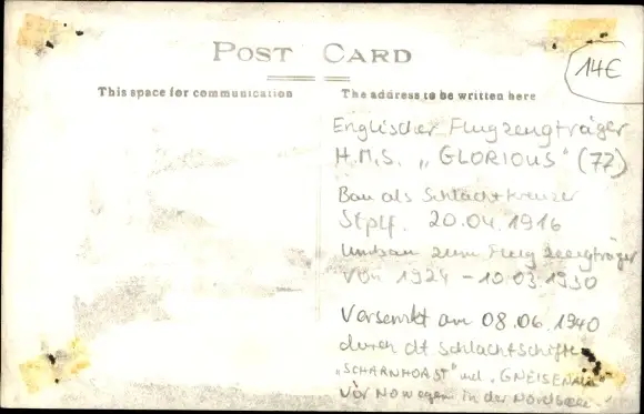 Foto Ak Britisches Kriegsschiff, HMS Glorious, Flugzeugträger