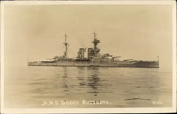 Foto Ak Britisches Kriegsschiff, HMS Queen Elizabeth, Schlachtschiff
