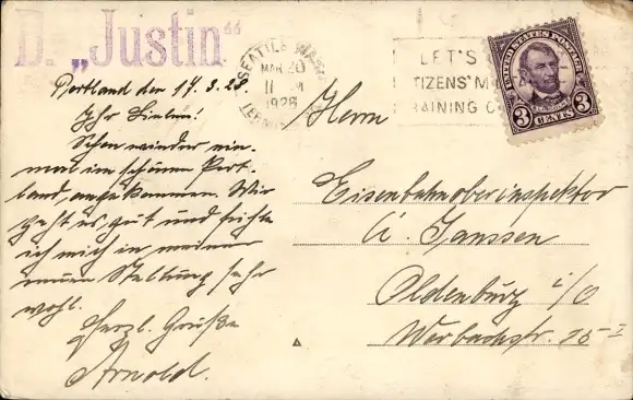 Zustand, siehe Scan, gelaufen, 1928 - ca 14 cm X 9 cm