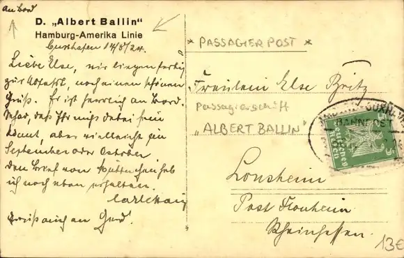 Foto Ak Dampfschiff Albert Ballin, HAPAG