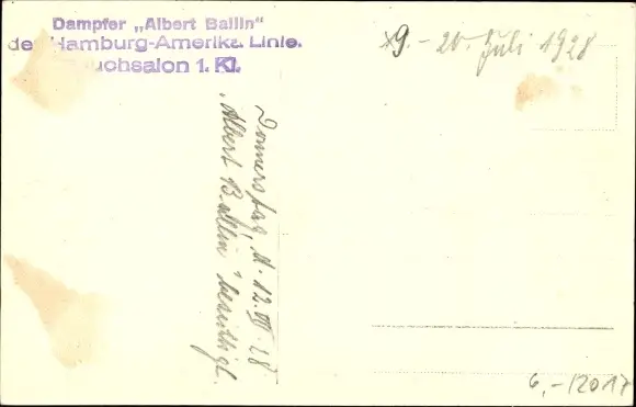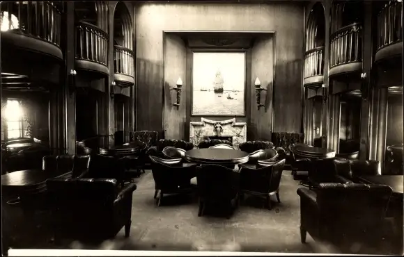 Foto Ak Dampfschiff Albert Ballin, Rauchsalon, Innenansicht, HAPAG