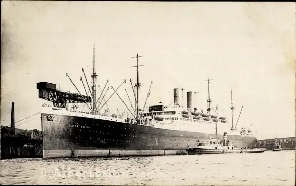 Foto Ak Dampfschiff Albert Ballin, Vor Anker im Hafen, HAPAG