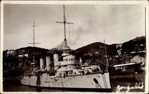 Foto Ak Dampfschiff in einem Hafen, Dampfer
