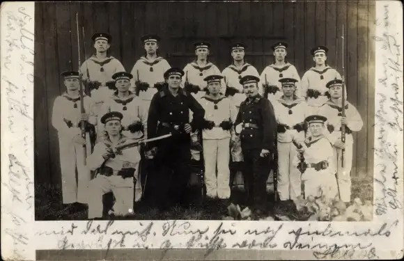 Foto Ak Deutsche Matrosen in Uniformen, Seeleute, Gruppenaufnahme