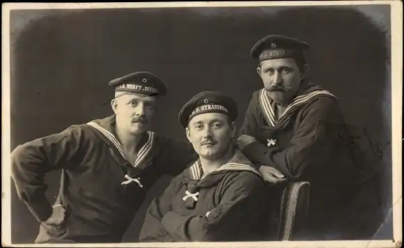 Foto Ak Deutsche Seeleute in Uniform, SMS Straßburg, Kaiserzeit