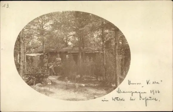 Foto Ak Deutsche Soldaten, Unterstand, I. WK, Wald