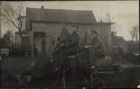 Foto Ak Deutsche Soldaten in Uniform, Auf in die Sommerfrische, Munsterlager