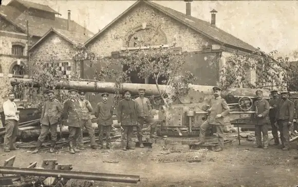 Foto Ak Deutsche Soldaten in Uniform, Geschütz, 1. WK
