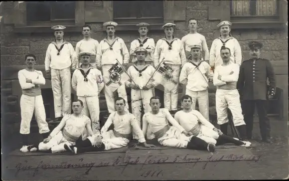 Foto Ak Deutsche Soldaten in Uniformen, Seeleute, Flaggen