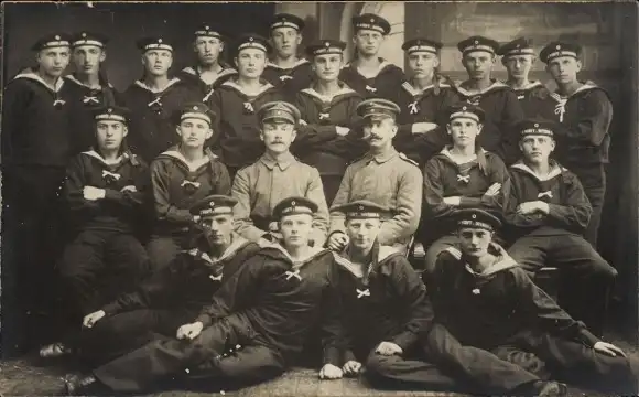 Foto Ak Deutsche Soldaten in Uniformen, Seeleute, Gruppenaufnahme