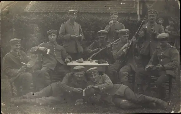 Foto Ak Deutsche Soldaten in Uniformen am Tisch, I. WK