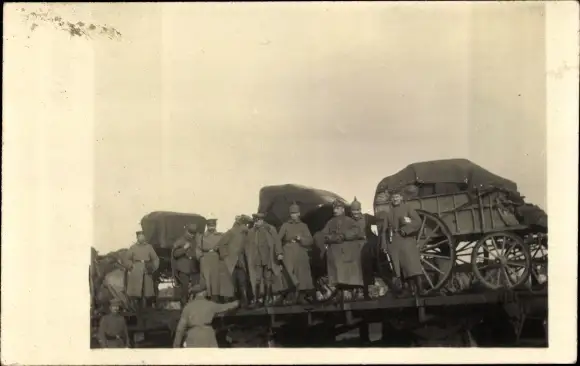 Foto Ak Deutsche Soldaten in Uniformen auf einem Güterzug, I WK
