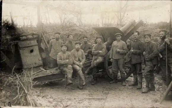 Foto Ak Deutsche Soldaten in Uniformen mit Geschütz, I WK