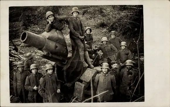 Foto Ak Deutsche Soldaten in Uniformen mit Geschütz, I WK