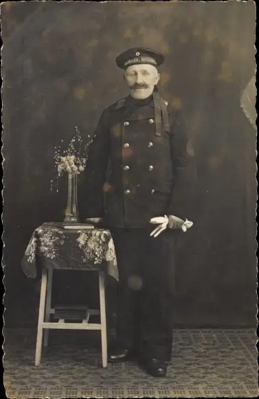 Foto Ak Deutscher Marinesoldat in Uniform, Standportrait, Blumenvase