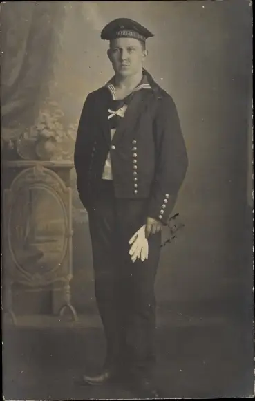 Foto Ak Deutscher Seemann in Uniform, Standportrait, Kaiserliche Marine