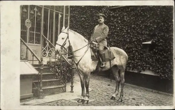 Foto Ak Deutscher Soldat auf einem Pferd, Portrait