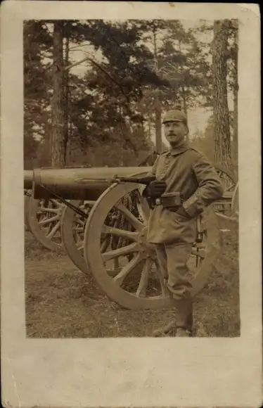 Foto Ak Deutscher Soldat in Uniform, Geschütz, Kaiserzeit