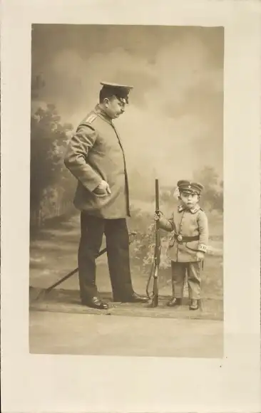 Foto Ak Deutscher Soldat in Uniform, Kind in Uniform