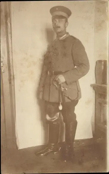 Foto Ak Deutscher Soldat in Uniform, Schirmmütze, Säbel