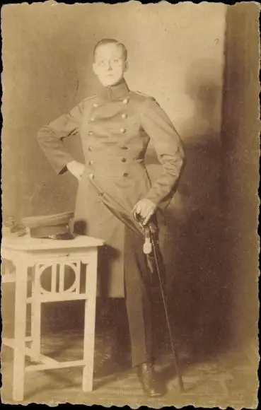 Foto Ak Deutscher Soldat in Uniform, Standportrait, Kaiserzeit