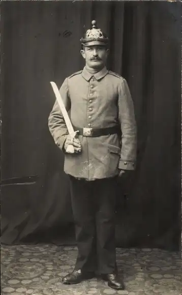 Foto Ak Deutscher Soldat in Uniform, Standportrait, Pickelhaube, Ulm