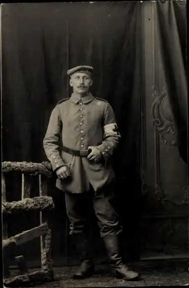 Foto Ak Deutscher Soldat in Uniform, Standportrait, Sanitäter, I WK
