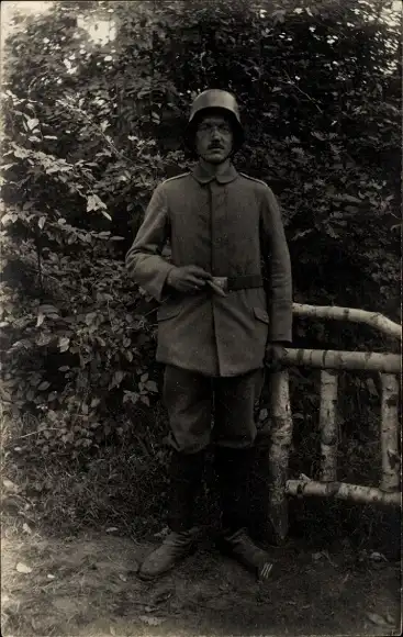 Foto Ak Deutscher Soldat in Uniform, Sturmsoldat, Stahlhelm