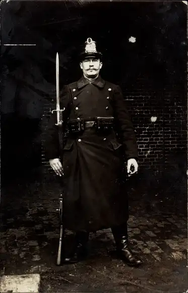 Foto Ak Deutscher Soldat in Uniform, Tschako, Bajonett, Standportrait