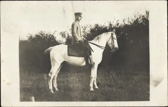 Foto Ak Deutscher Soldat in Uniform auf einem Pferd