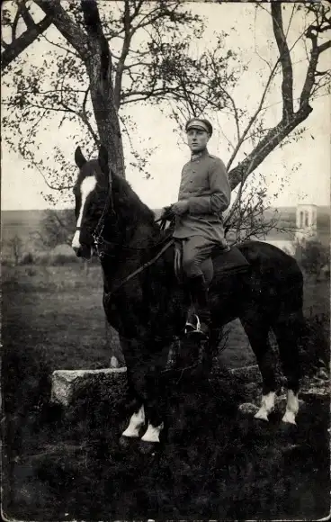 Foto Ak Deutscher Soldat in Uniform auf einem Pferd